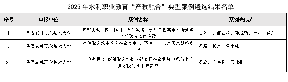 近日,中国水利教育协会公布了2025年水利职业教育“产教融合”优秀典型案例遴选结果。由水利工程学院报送的《双擎驱动、四方协同、五位赋能:水利工程高水平专业群产教融合创新实践》、产教融合处报送的《产教融合筑牢双高建设之本,职教创新助力国家战略之进》、交通与测绘工程学院报送的《“六共携进 四维融合”校企行协同建设测绘地理信息产业学院的探索与实践》3项案例入选优秀典型案例。