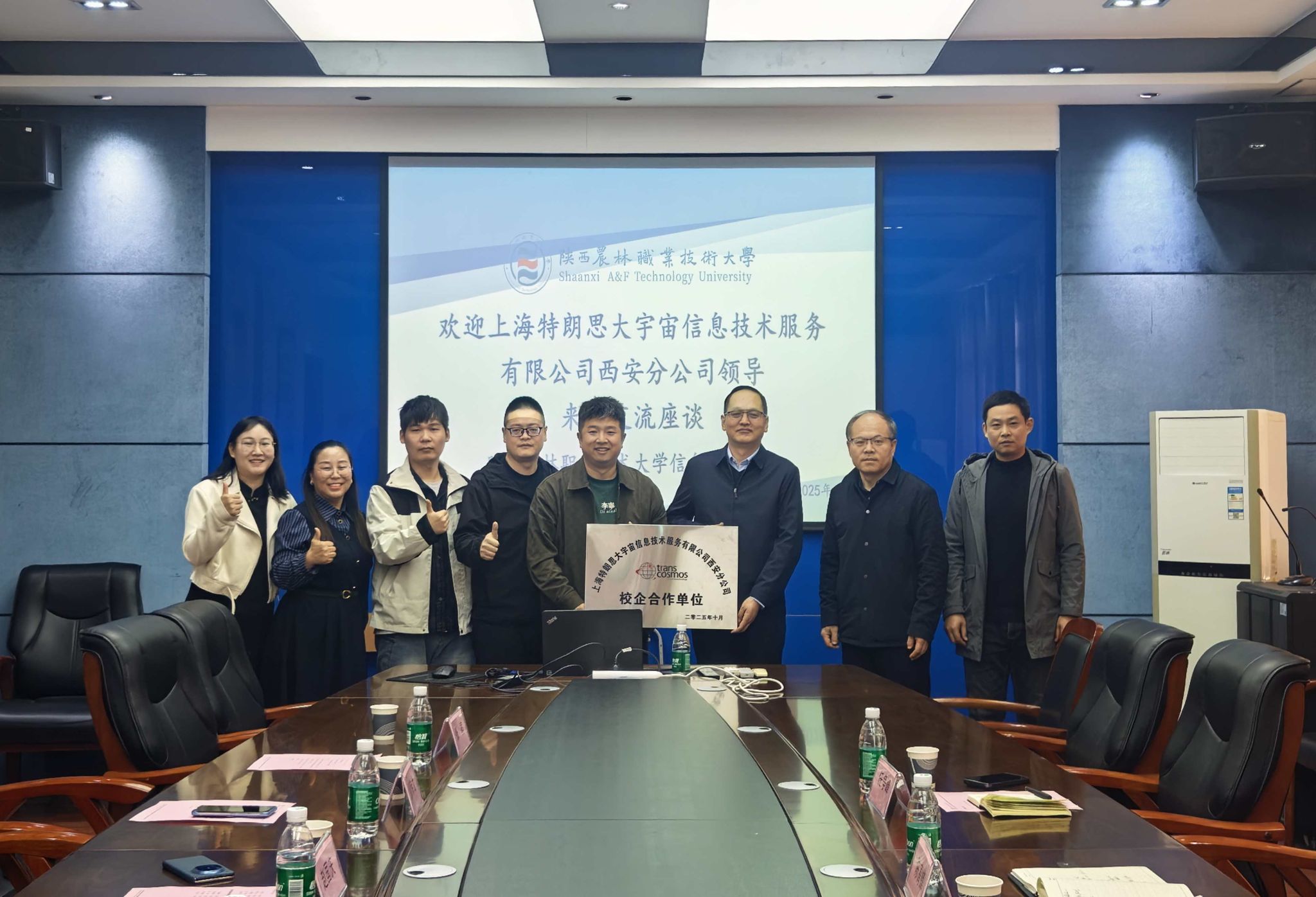 信息工程学院先后与无锡华润安盛科技有限公司、上海特朗思大宇宙信息技术服务有限公司西安分公司、陕西烽火云谷物联网技术有限公司开展校企合作交流活动。其中,与无锡华润安盛科技有限公司在学校农高会会客厅举行校企合作会谈,并带领参观了学校“农高会会客厅”、西北农林专科学校附设高职党支部活动旧址及百年伟业红色三农研学馆。与上海特朗思大宇宙信息技术服务有限公司西安分公司开展校企交流座谈,签署校企合作协议并举行授牌仪式。与陕西烽火云谷物联网技术有限公司开展校企座谈,签署校企合作协议。