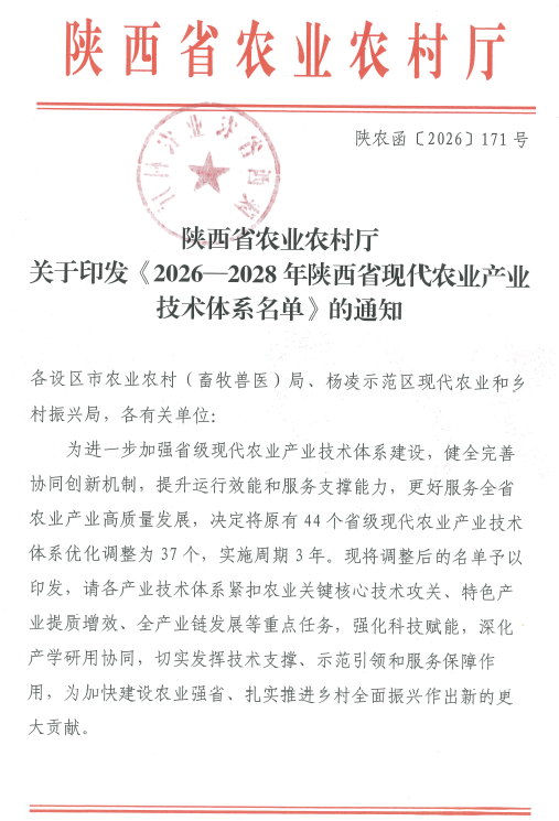 喜讯 |我校29名教师入选陕西省现代农业产业技术体系专家名单