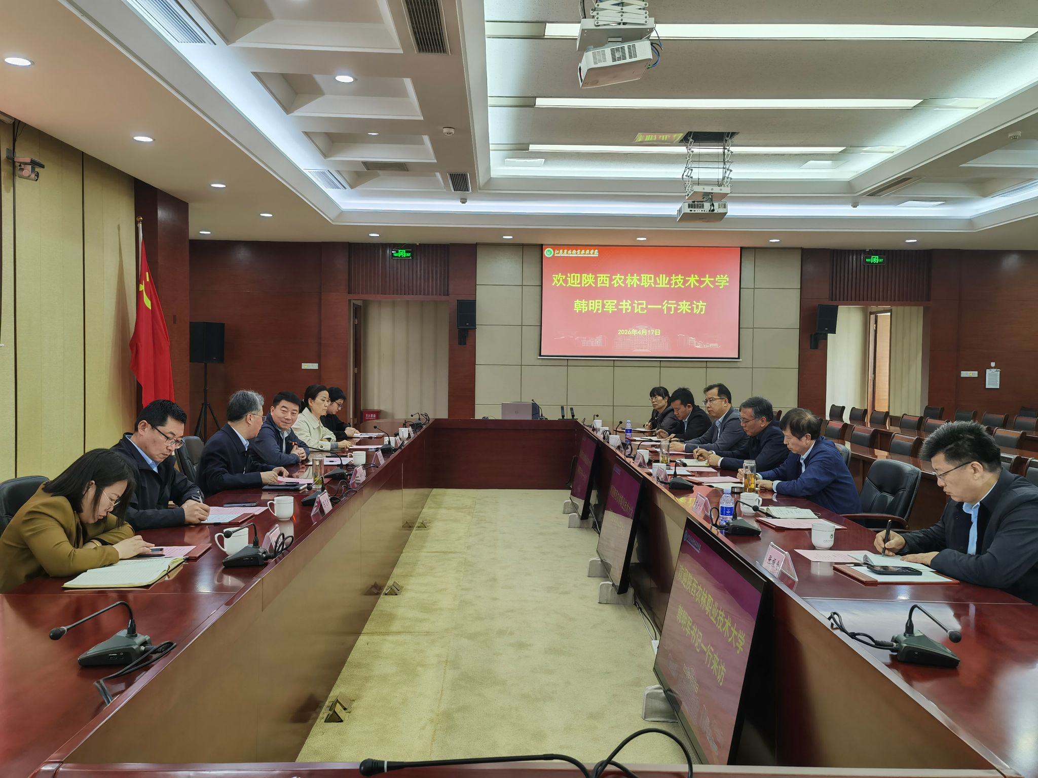 4月14日至17日,党委书记韩明军带队赴江苏考察交流,对接苏陕协作工作。期间,韩明军在江苏省发展改革委座谈交流,并先后赴江苏农牧科技职业学院、江苏农林职业技术学院考察交流。江苏省发展改革委副主任吴昱,江苏农牧科技职业学院党委副书记、校长赵玉萍,副校长刘俊栋,江苏农林职业技术学院党委书记简祖平、副校长颜志明,我校副校长祝战斌出席座谈会。