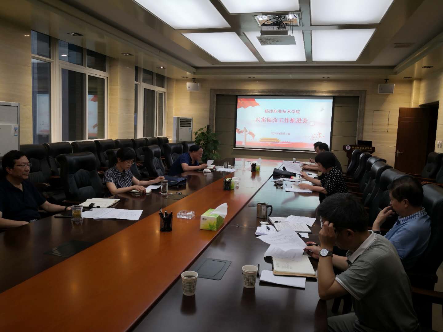 8月7日下午,学院党委书记陈宁主持召开了以案促改工作推进会。会议听取了以案促改工作进展情况的汇报,安排部署了下一步的工作。党委副书记、院长王周锁,党委副书记任得元,党委副书记、纪委书记刘粉莲,副院长张迪、祝战斌等以案促改专项工作领导小组成员参加了会议。