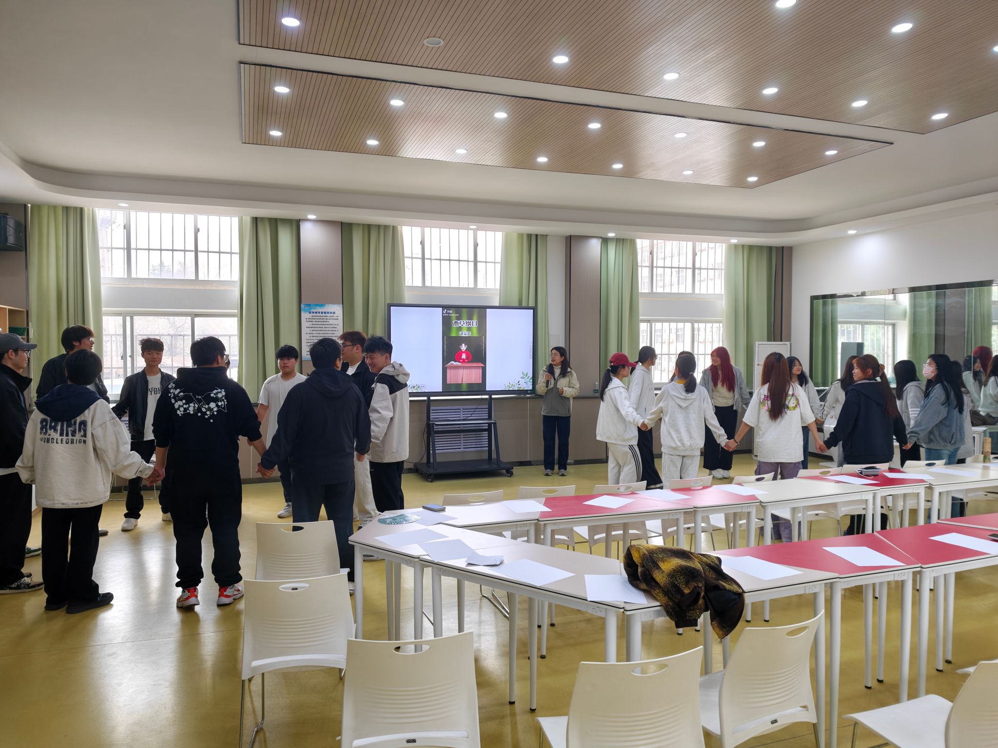 活动伊始,老师带领同学们开展静心操及趣味互动游戏,帮助大家舒展身心、打破陌生感,快速融入团体,为后续活动开展营造了温暖、放松的良好氛围,有效拉近了学生间的距离,建立了彼此信任的团体关系。