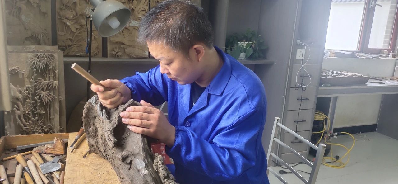吴文军:我从小比较喜欢木雕,就是我家里是做木工的,然后在后期我对这方面特别特别的感兴趣,后来高考毕业以后,我就考到咱们杨凌职业技术学院,在学校里面我又跟随学习专业的绘画,出来以后,我又在外面学习了四年的木雕,对各种工艺都比较娴熟。